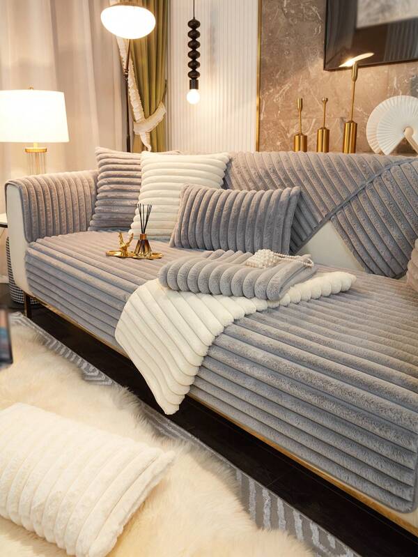 1pc Rabbit proof plush straight sofa cushion in winter