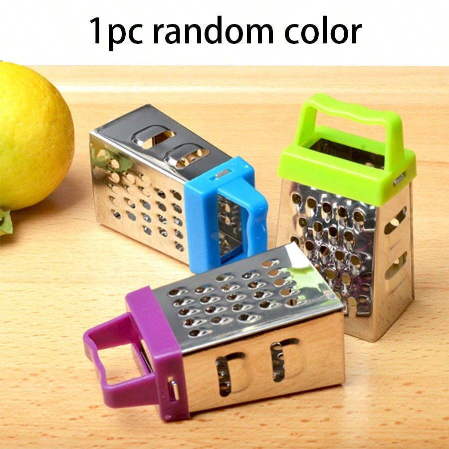 1pc Random Color Mini Four-Sided Cheese Grater & Vegetable Slicer, Stainless Steel Multifunctional Kitchen Accessory, Lemon Zester