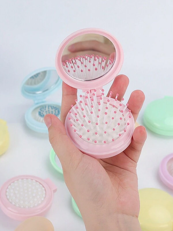 1pc Random Color Portable And Foldable Macaron-Colored Airbag Comb With Mini Mirror, Cute Cushion Massage Comb