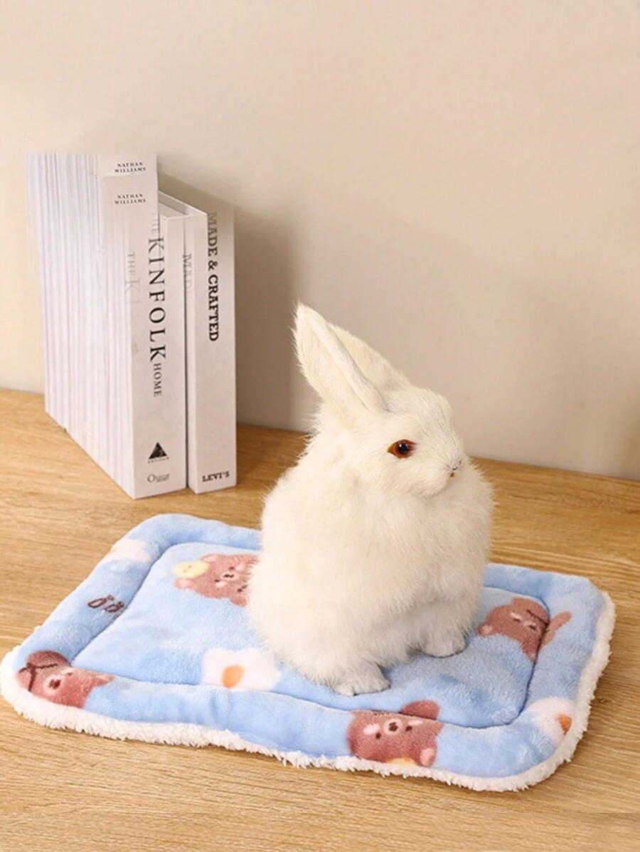 1pc Random Interior Color Cartoon Printed Flannel Pet Mat With Thick Bunny Foot Mat For Small Pets To Keep Warm And Comfortable, Suitable For Autumn And Winter