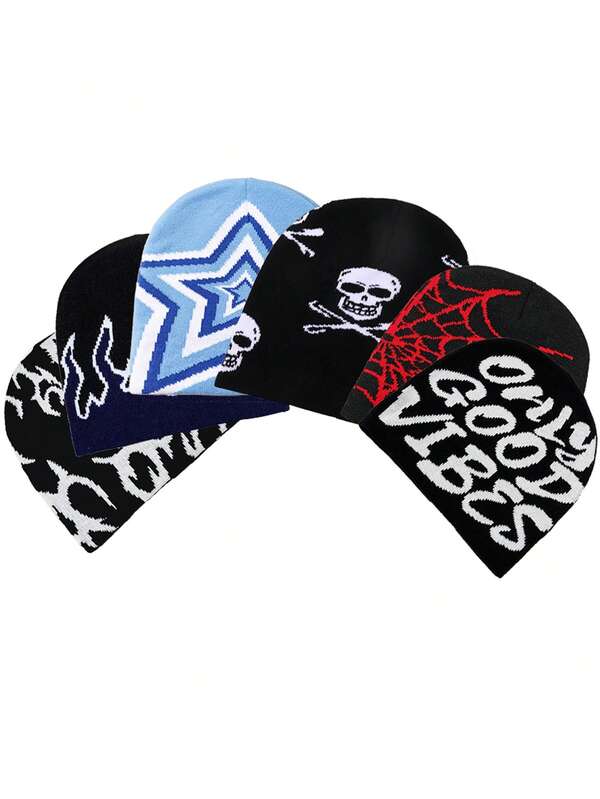 1pc Randomly Sent Personality Patterned Knit Hat For Men