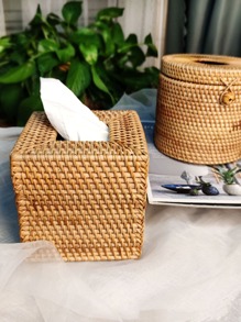 1pc Rattan Tissue Storage Box, Japanese Style Tissue Box Cover Holder For Table