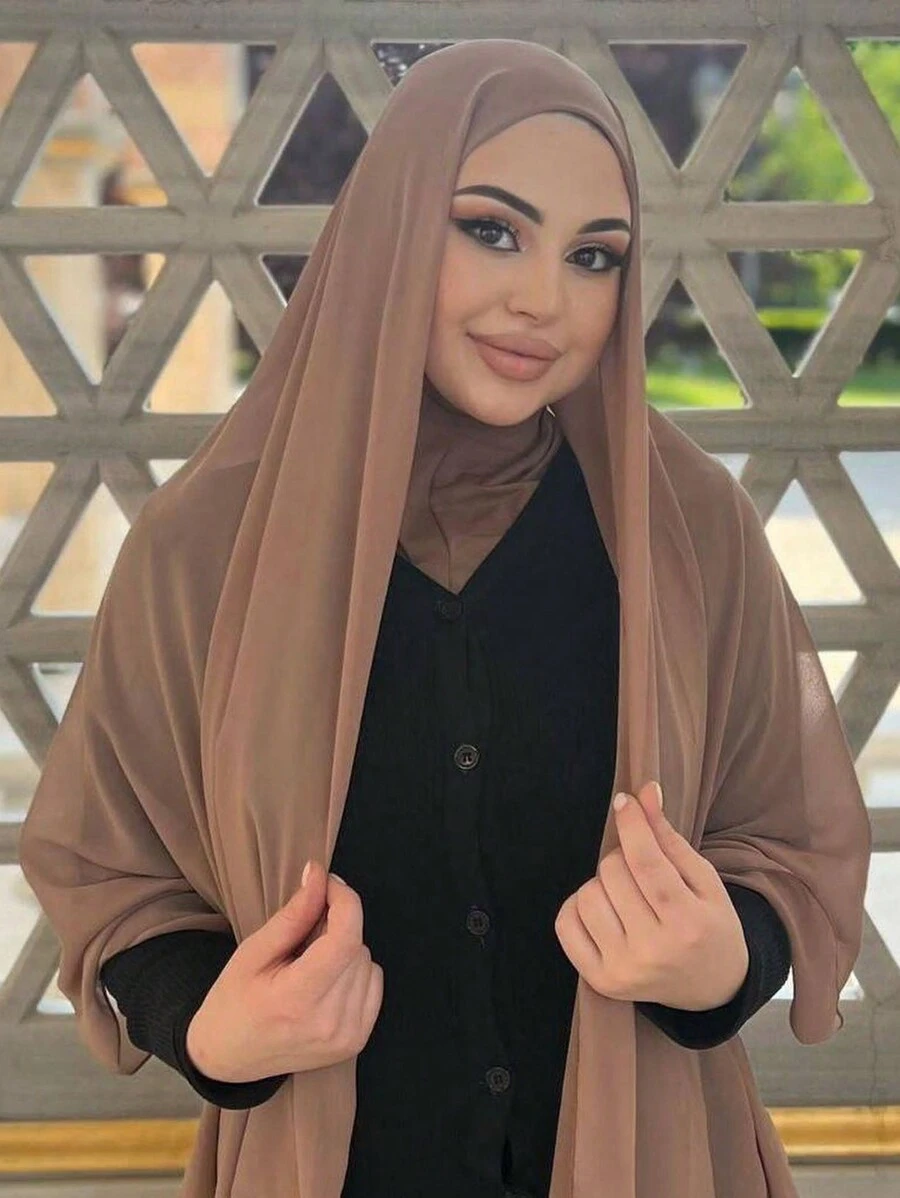 1pc Ready To Wear Instant Hijab Women'S Solid Colored Chiffon Hooded Headscarf, Style