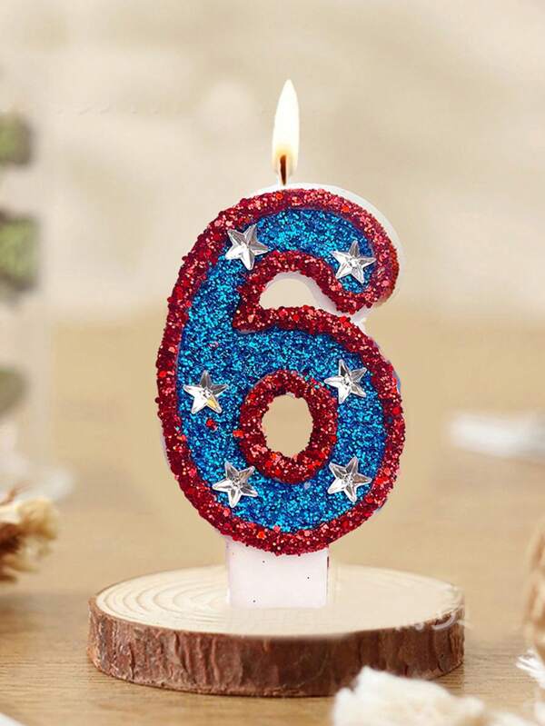 1pc Red & Blue Number Candle With Silver Star Decoration, 0-9, For Birthday, Anniversary, Festival Party Cake Decoration