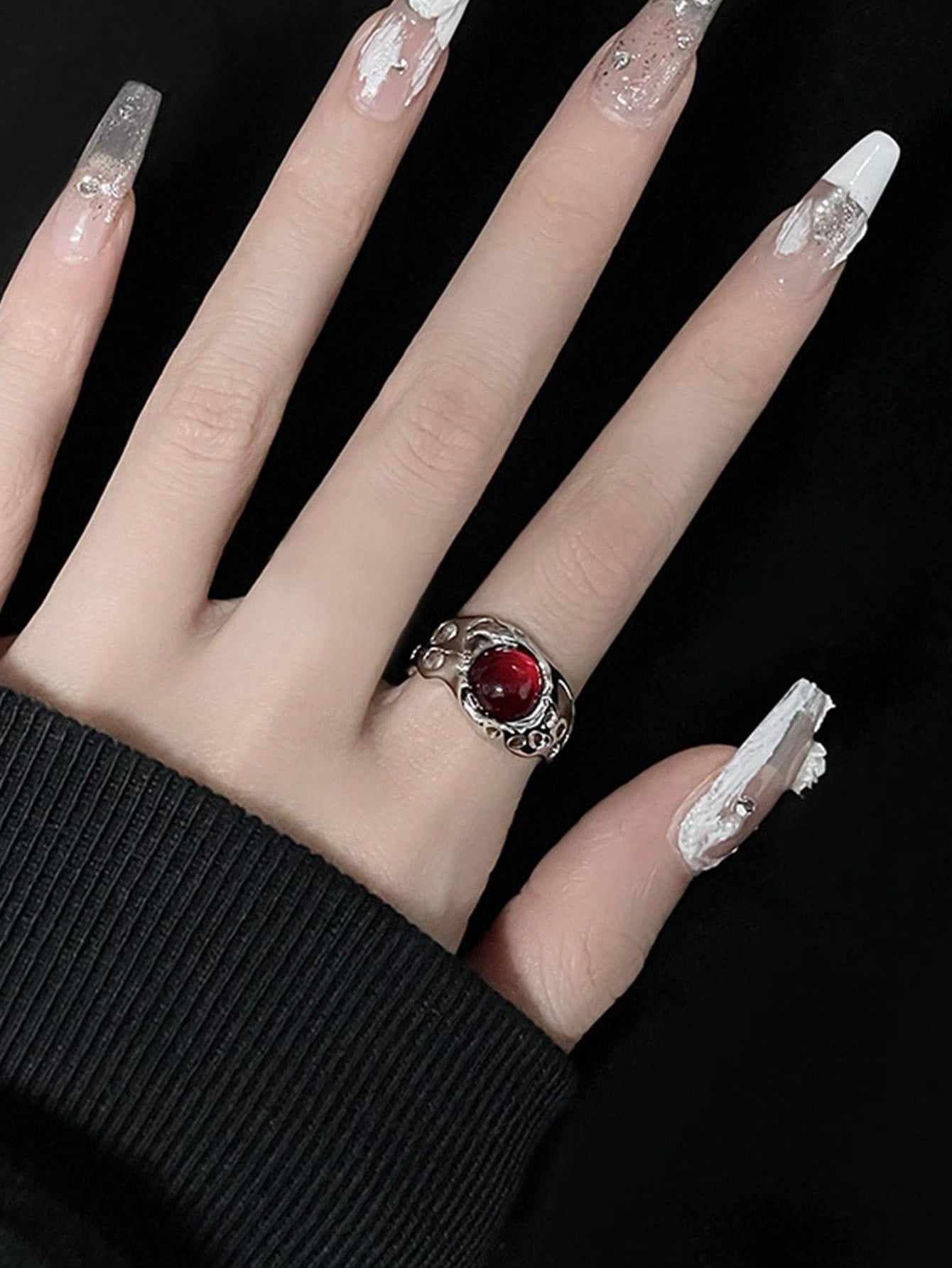 1pc Red Agate Vintage & Minimalist Design Ins Style High-End Simple Petal Shape Gemstone Ring