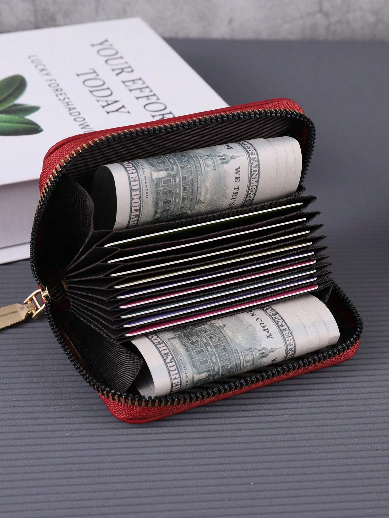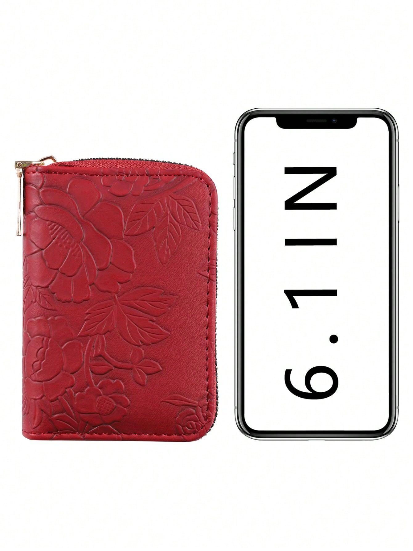 1pc Red Women'S Fashionable Simple Short Wallet With Large Capacity And Multiple Card Slots, Single Zipper, Portable, Printed Design For Coins And Cards