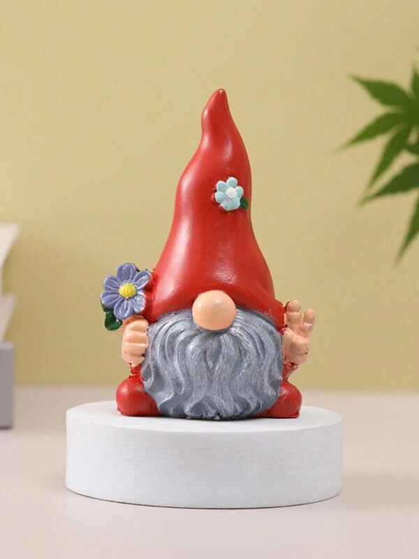 1pc Resin Figurine Of An Elderly Person Holding Flowers, Lovely Modern Style Home Decoration For Desk Display