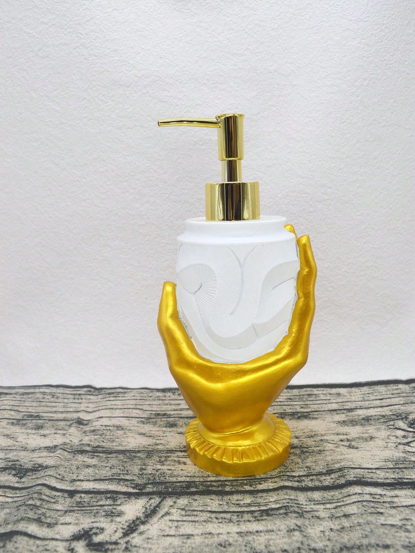 1pc Resin Liquid Soap Dispenser With Gold Finger Shaped Design