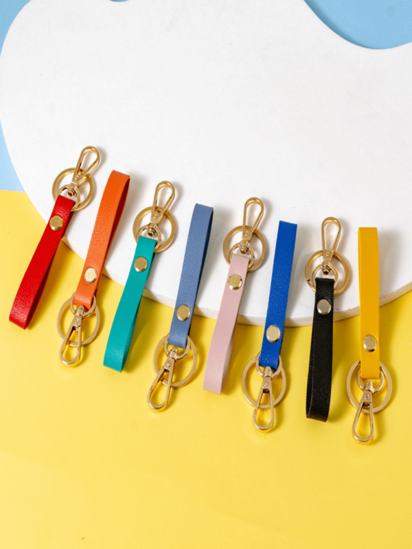 1pc Retro & Stylish Simple Creative Pu Solid Color Keychain For Couple, Key Ring Pendant