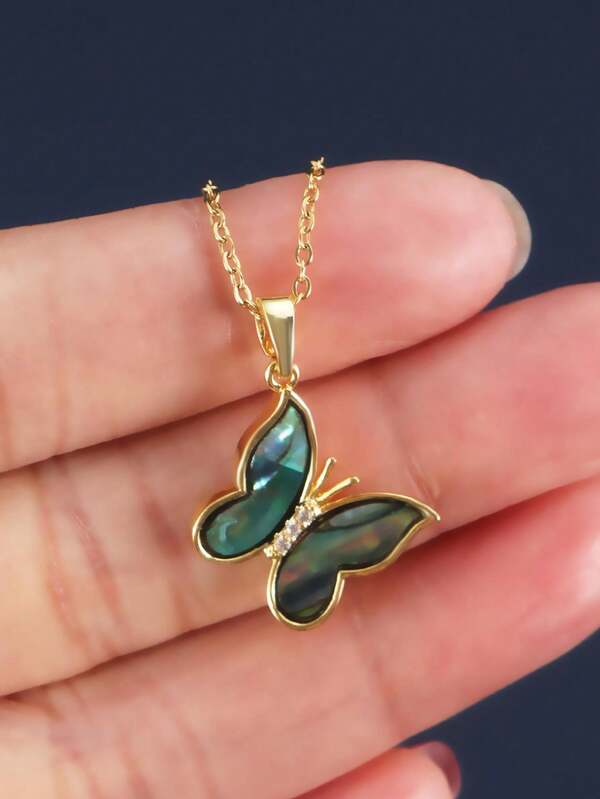 1pc Retro Style Abalone Shell & Butterfly Shaped Titanium Steel Pendant Necklace For Women Daily Wear/Festival Gift