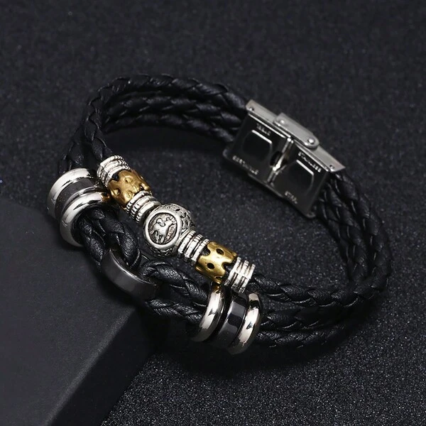 1pc Retro Style Zodiac Sign Bracelet With Stainless Steel Buckle, Handmade Leather Braided Decor, Unisex, Couple, Personalized Black Agate Student Accessories