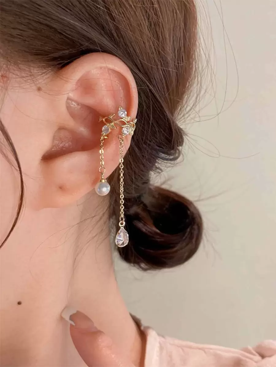 1pc Rhinestone & Faux Pearl Decor Ear Cuff