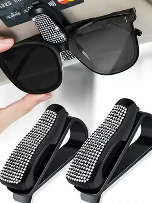 1pc Rhinestone Decor Car Sun Visor Glasses Holder Clip