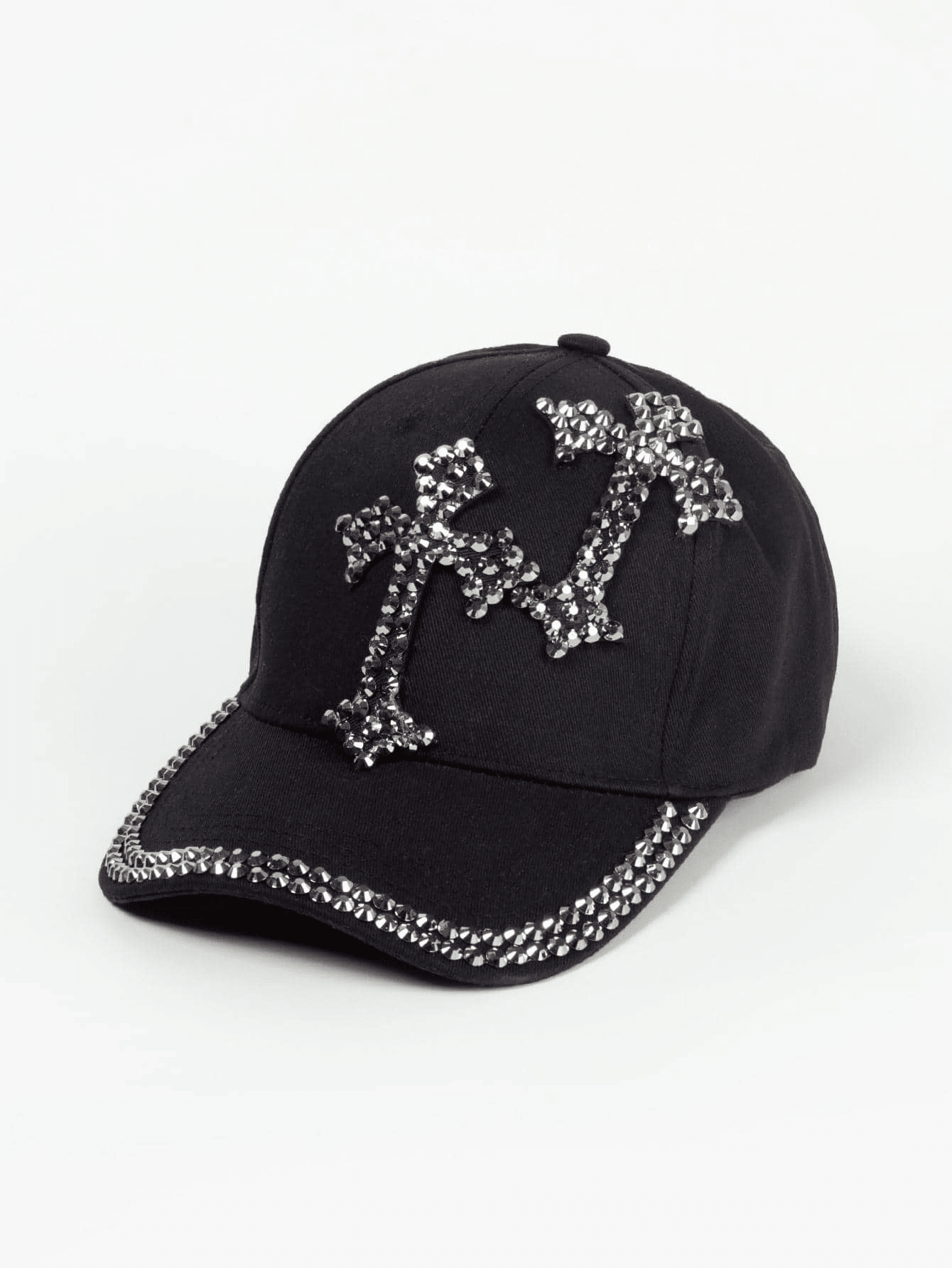 1pc Rhinestone Decorated Cross Designed Street Style Unisex Baseball Cap