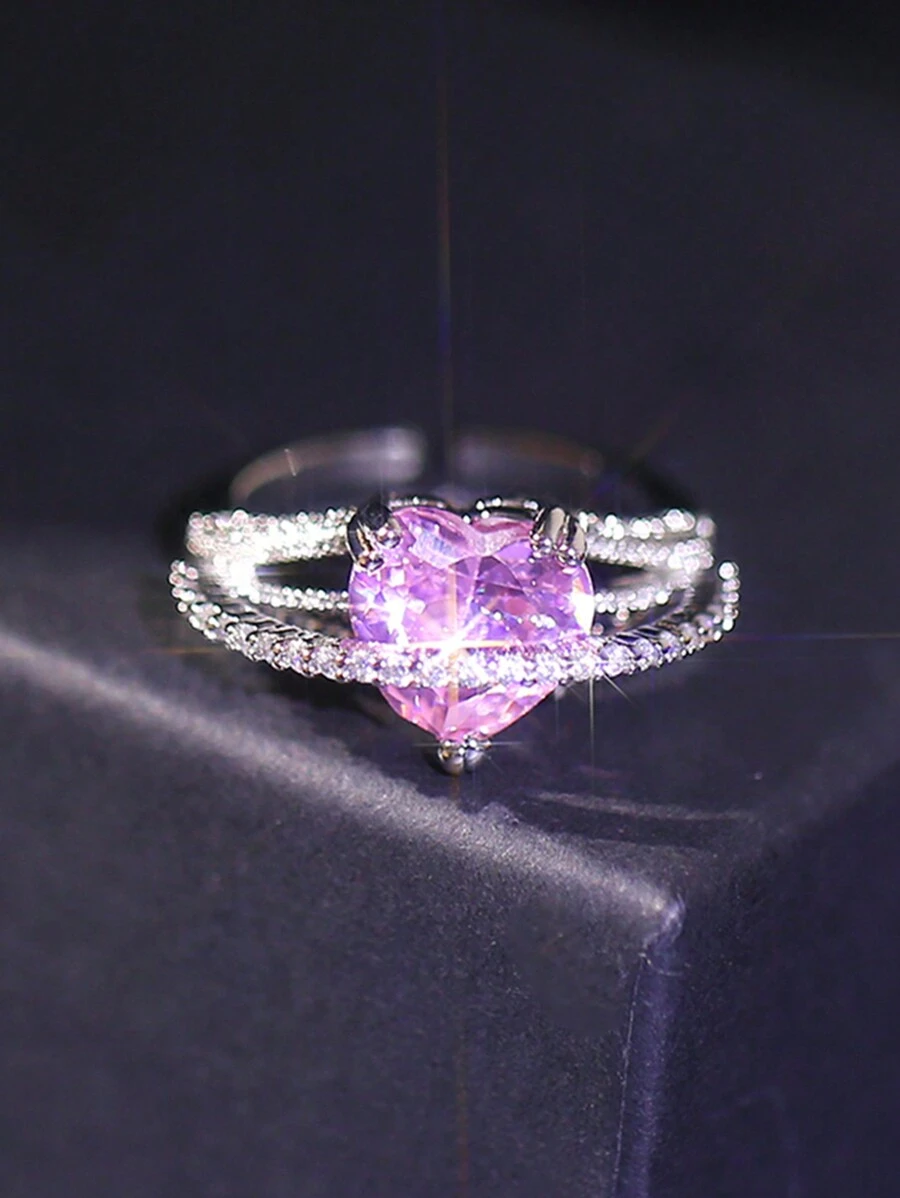 1pc Romantic Fashionable Alloy White Heart Shaped Gemstone Ring, Valentine'S Day Gift For Girlfriend