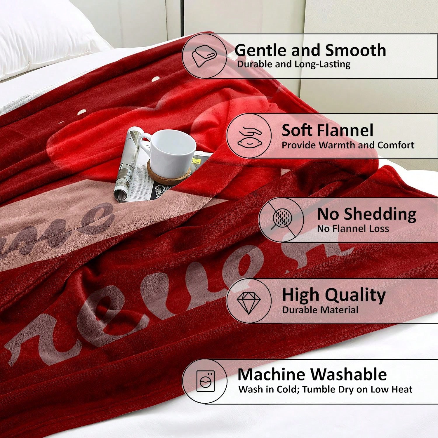 1pc Romantic Red Love Heart Print Flannel Rectangular Soft Sofa Cover Blanket, Suitable For Valentine'S Day, New Year, Daily Home Use