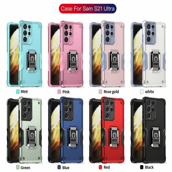 1pc Rose Gold Ring Holder Pc+Tpu+Matte Uv Leisure Anti-Drop Phone Case Compatible With Apple, Oppo, Samsung A54