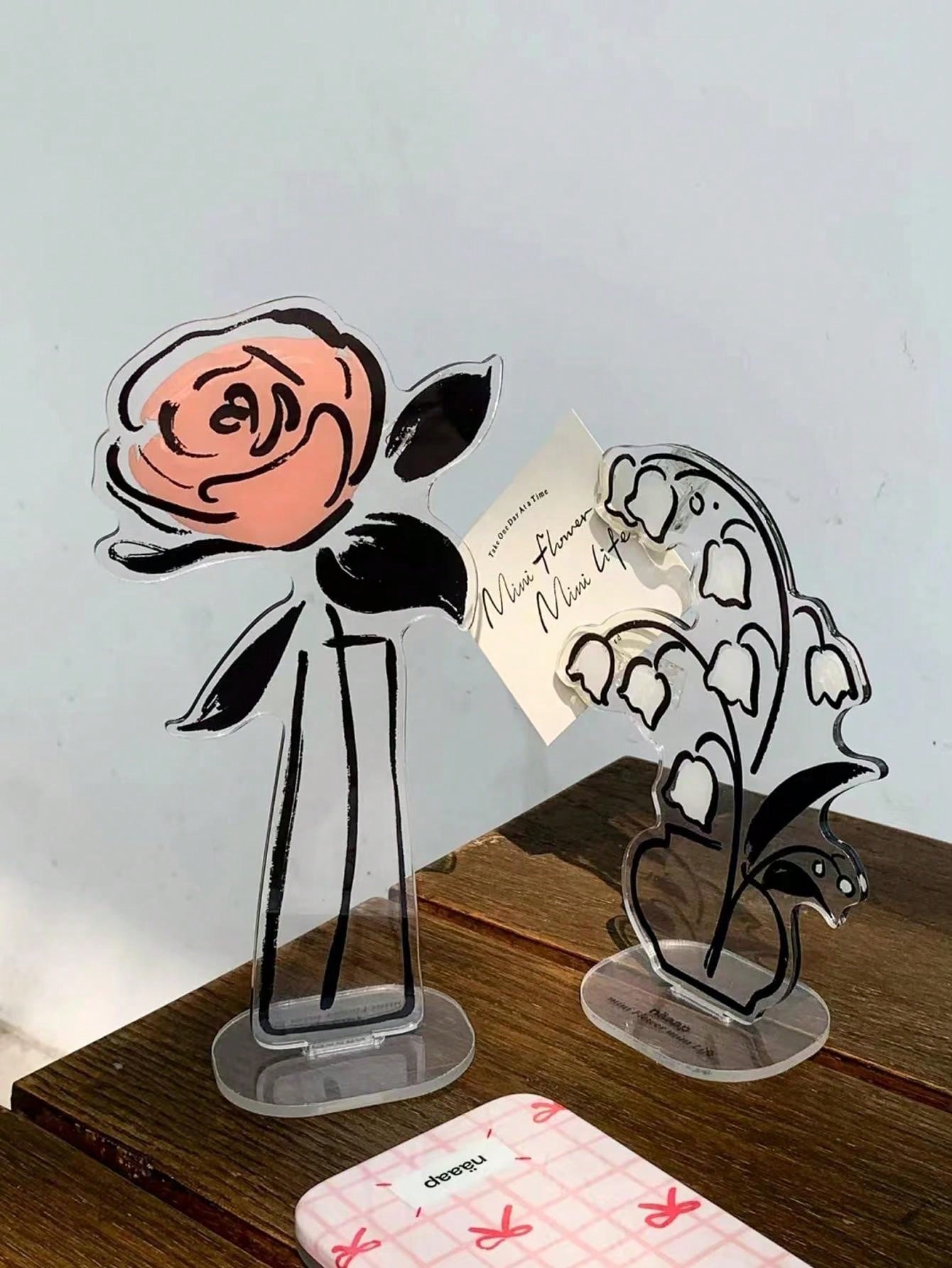 1pc Rose Message Standing Acrylic Note Holder Desktop Ornament Hand-Painted Illustration Learning Desktop Ornament High-Looking Acrylic Photo Holder Postcard Display Stand