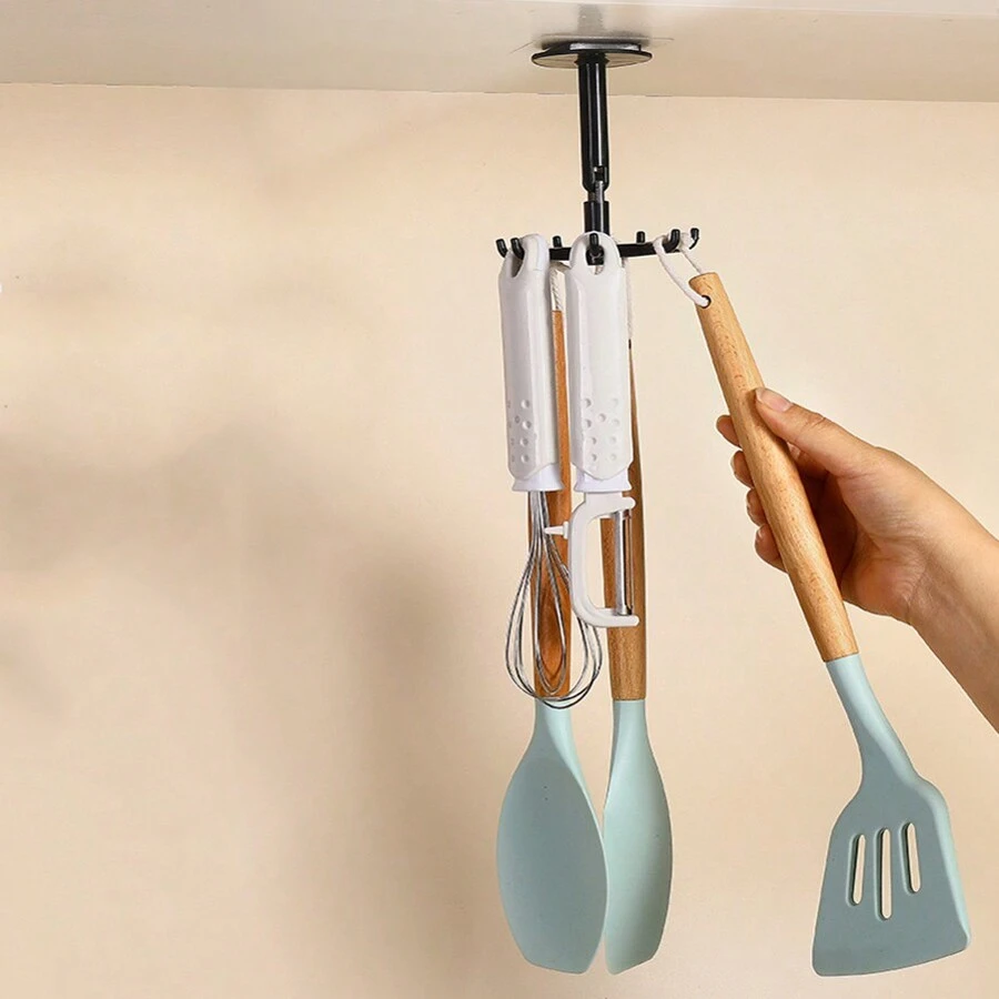 1pc Rotatable 7-Claw Hook For Multifunctional Kitchen Storage, 360 Degrees Traceless Adhesive Hook For Home Use, No Need To Drill