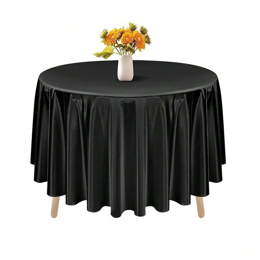 1pc Round Satin Tablecloth, Premium Quality Silk Table Cover, Smooth-looking Table Linen, Bright Silk Satin Tablecloth, Ideal For Weddings, Banquets And Large Events
