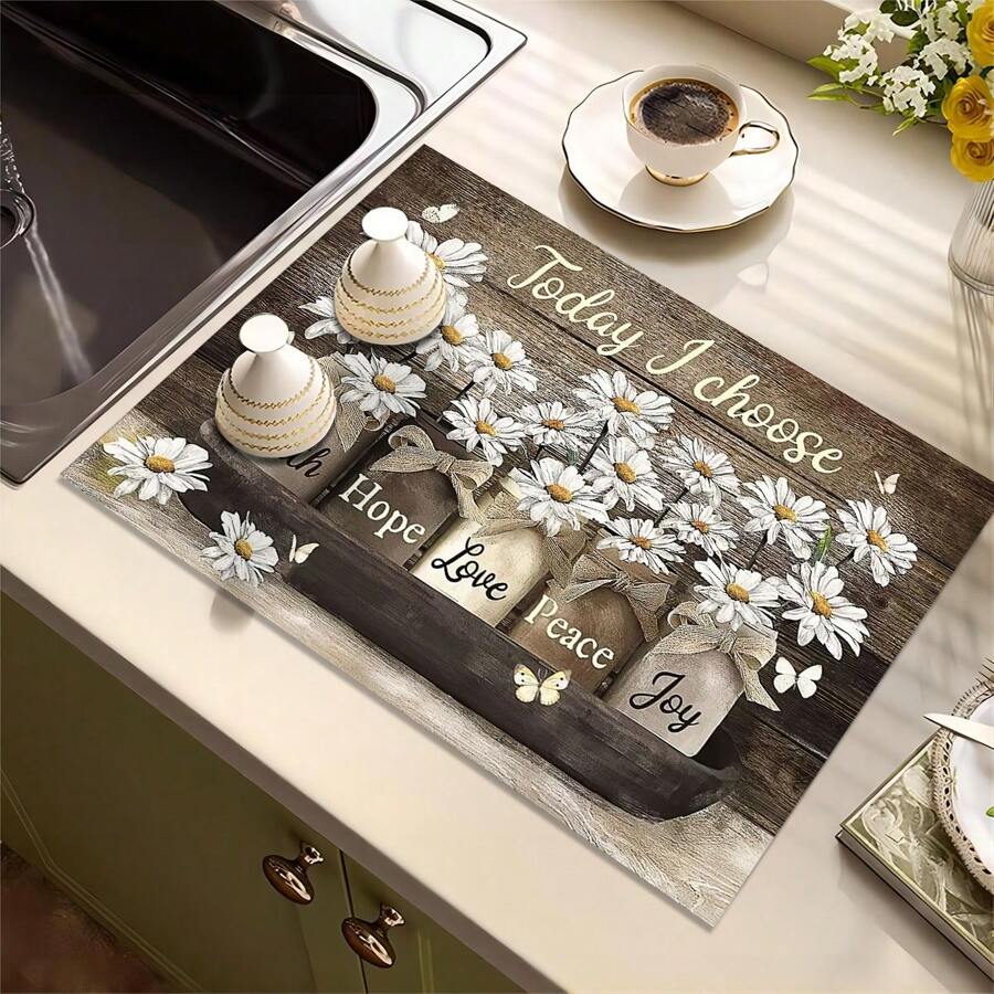 1Pc, Rubber Drying Mat With Retro Coffee Printing Pattern, Tableware For Coffee Shop And Restaurant, Kitchen Carpet Tableware, Diatom Mud Table Mat, Pet Mat., Kitchen, Summer Beach Party, Food, Camping, Organizer, Room Decor, Kitchen Items.