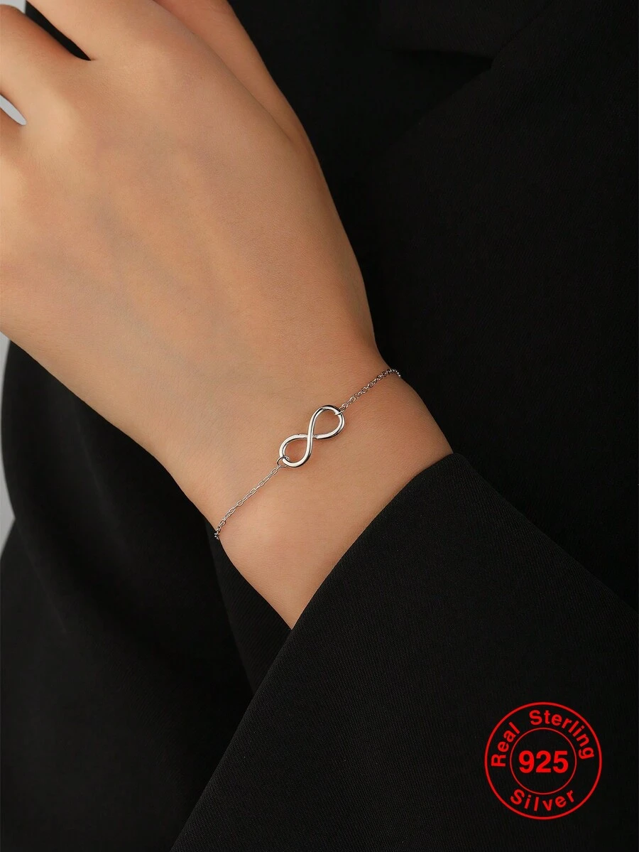 1pc S925 Sterling Silver Crossed Infinity Sign Women's Bracelet, Fashionable And Versatile Ladies' Jewelry Gift