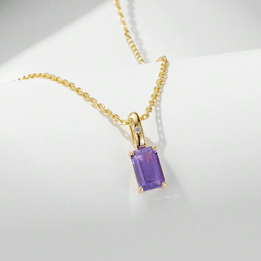 1pc S925 Sterling Silver Natural Purple Crystal & Olivine Pendant Necklace For Women, European And American Style, Ins Minimalist And Luxuriant Collarbone Chain