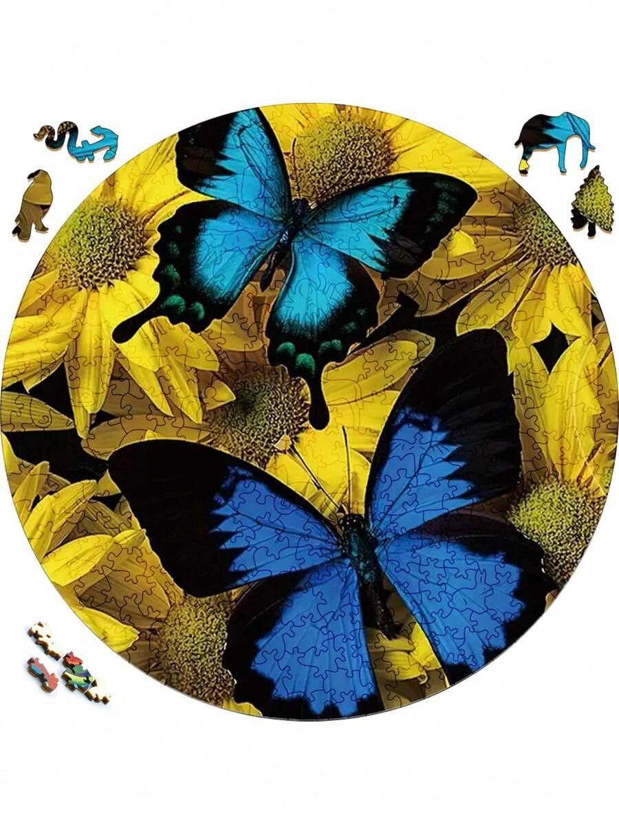 1pc Set Of Interesting Irregular Wood Block Colorful Butterfly Pattern Adult Unzip Toy Home Party Decoration Hanging Picture Wooden Puzzle