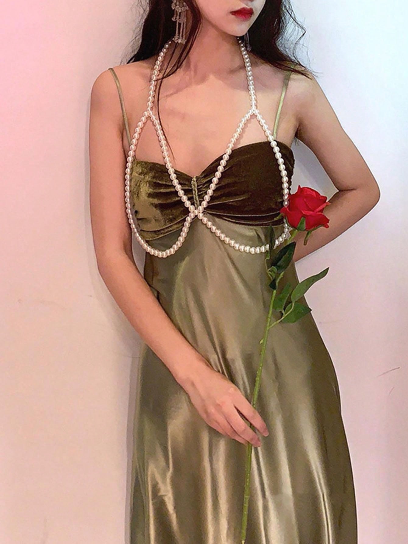1pc Sexy Versatile Body Jewelry Chain For Women, Personality Exaggeration Handmade Beaded Pearl Chest Chain