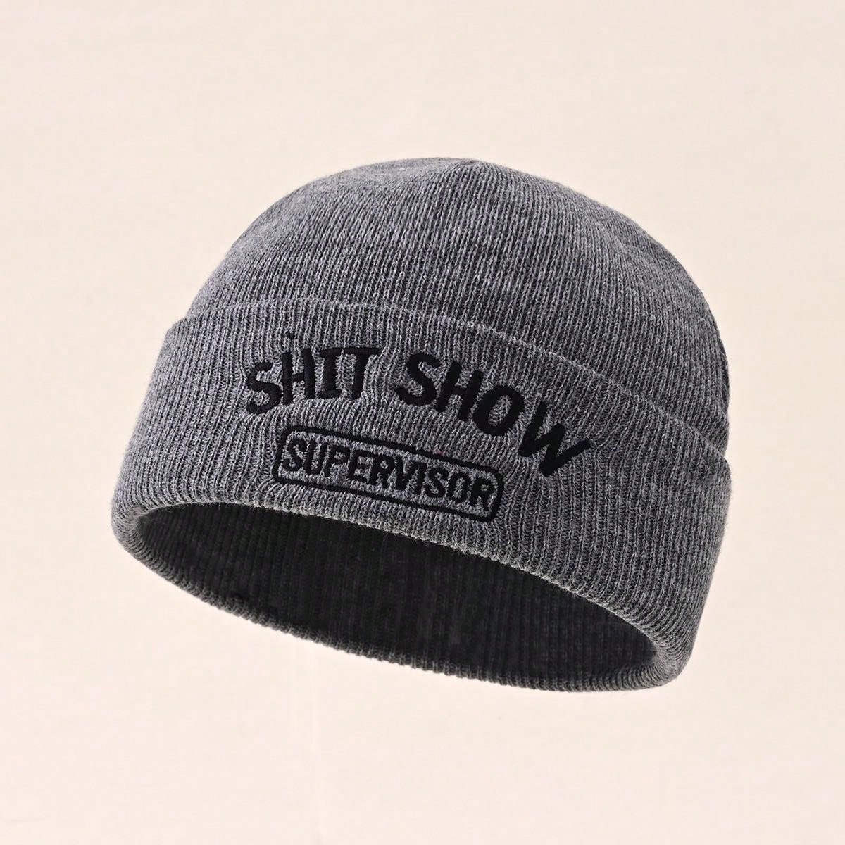 1pc Show Embroidery Couple Knitted Hat, Y2k Style Unisex Beanie, Lightweight Warm Winter Cap, Suitable For Casual Sports And Skiing