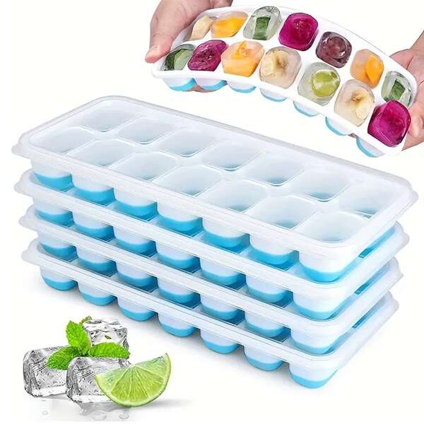 1pc Silicone Ice Cube Tray With 14 Grids, Soft Bottom & Lid, Home Ice Making Mold