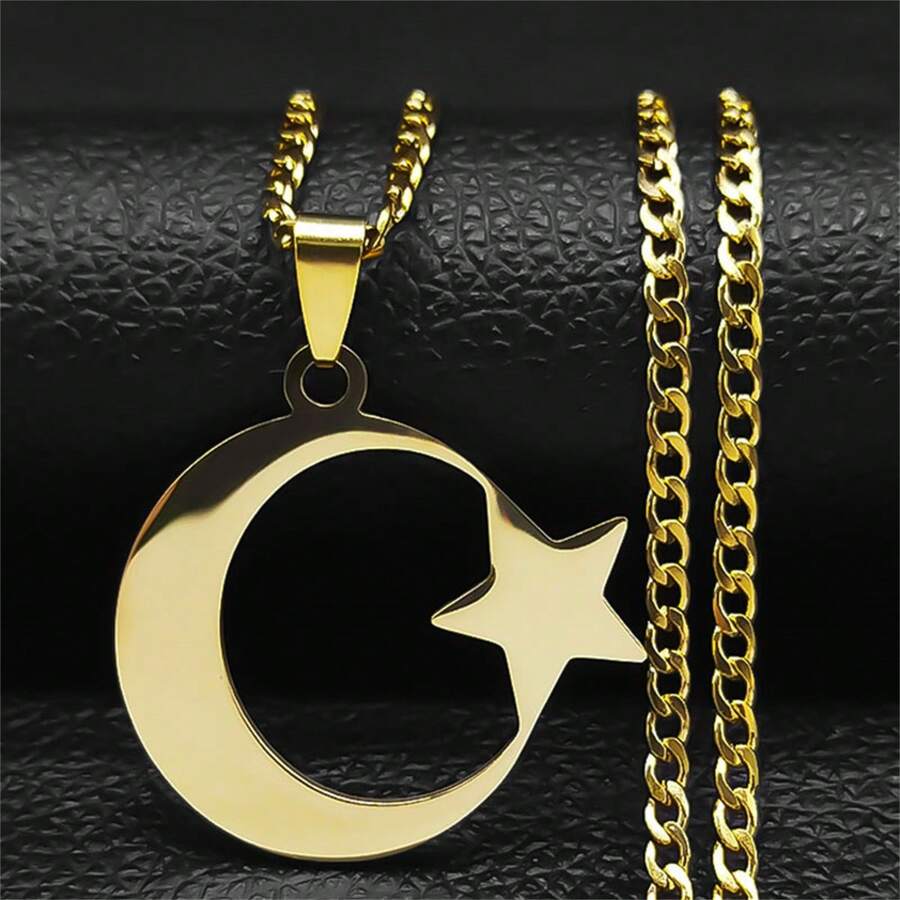 1pc Silver-Color Stainless Steel Moon & Star Pendant Necklace Suitable For Men's Daily Wear