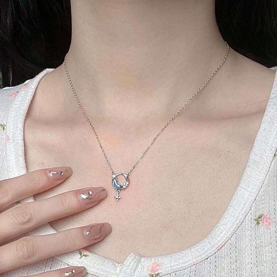 1pc Silver Dreamy Starry River & Moon Pendant Necklace For Women, Versatile Tarnish-Resistant Clavicle Chain