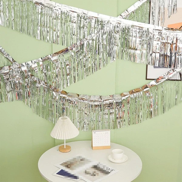 1pc Silver Fringe Tassel Flower Decor Party Decoration Table Skirt For Birthday, Wedding, New Year