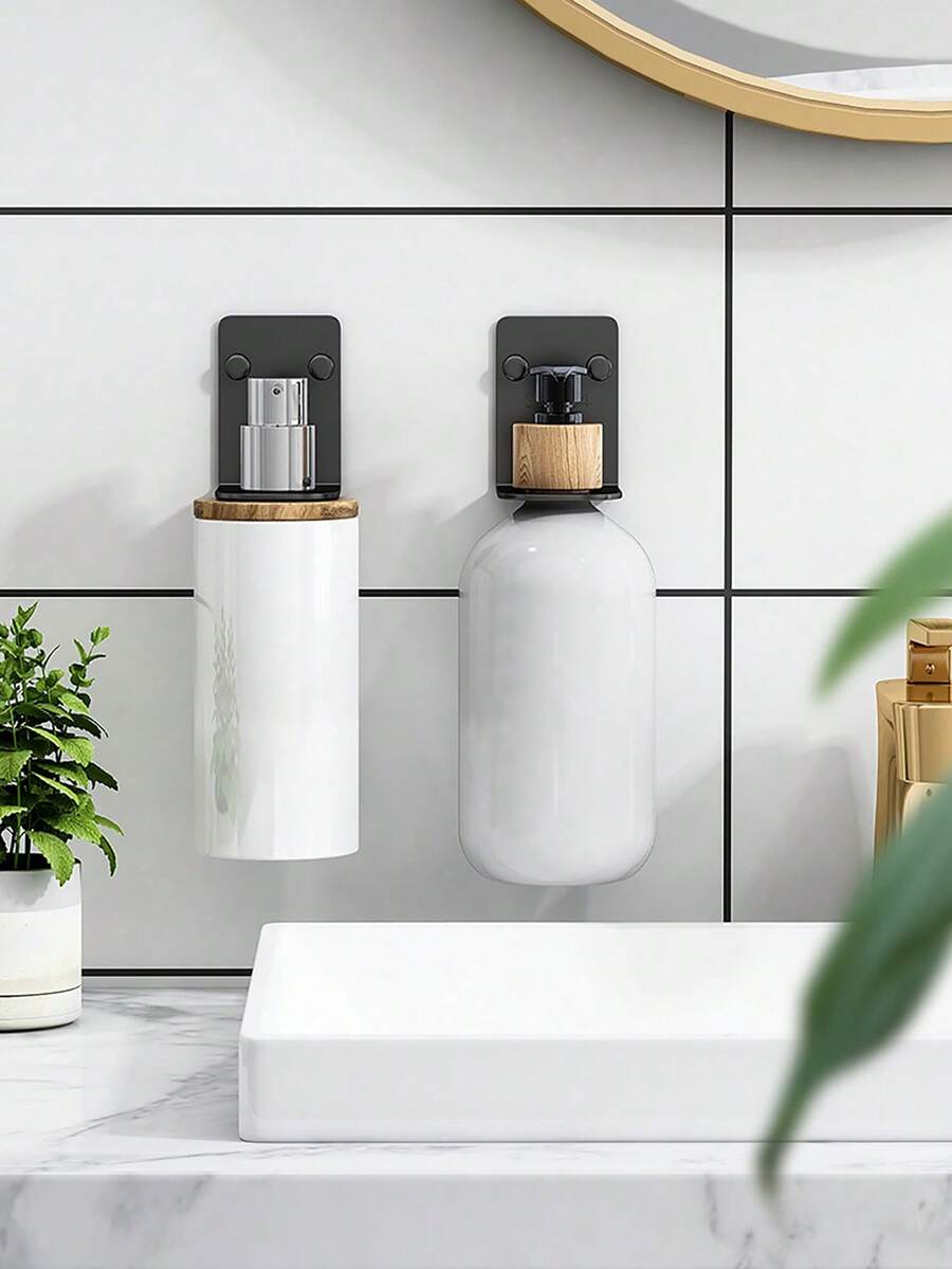 1pc Silver Stainless Steel Bathroom Storage Hook, Shampoo And Shower Gel Bottle Hanger, Soap Dispenser Wall Mount Rack, Adhesive Mounted Bathroom Storage Organizer, Wall Hanging Shelf For Shower Room, Bathroom Accessories