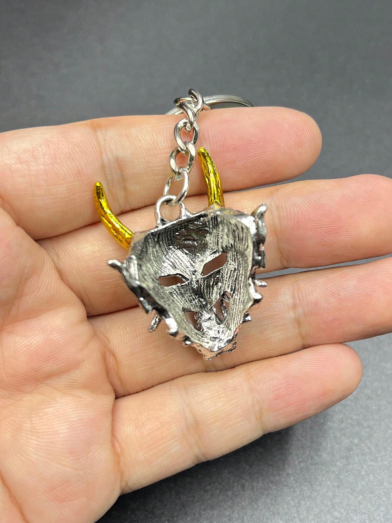1pc Silver-Tone Japanese Style Horror Warrior Gold Horn Skeleton Mask Shaped Zinc Alloy Keychain Or Pendant For Bag, Personalized Hip-Hop Punk Style Key Ring/Chain, Interesting Gift For Best Friends, Friend, Men