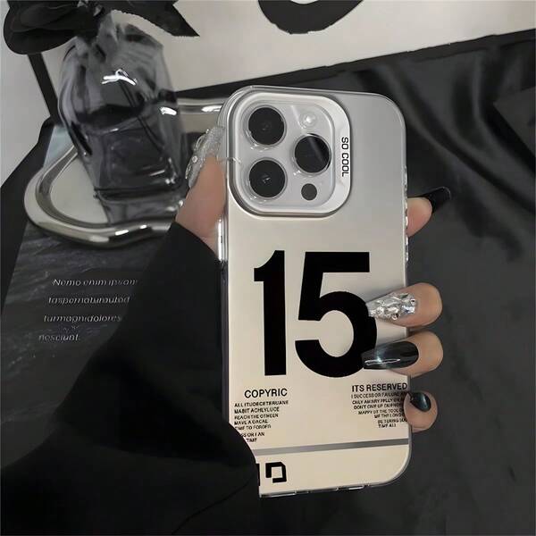 1pc Silver-Tone Unisex Shockproof Phone Case With Numerical English Design, Suitable For Iphone 7/8/11/12/13/14/15/X/Xr/Xs/Plus/Pro/Pro Max/Se2