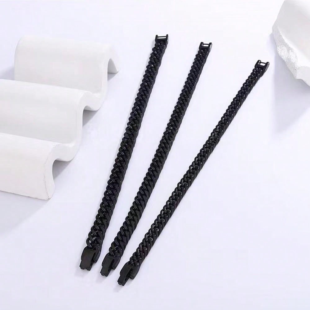 1pc Simple & Fashionable Black Titanium Steel Double Woven Bracelet With 18k Gold Plating, Handmade Chain Jewelry