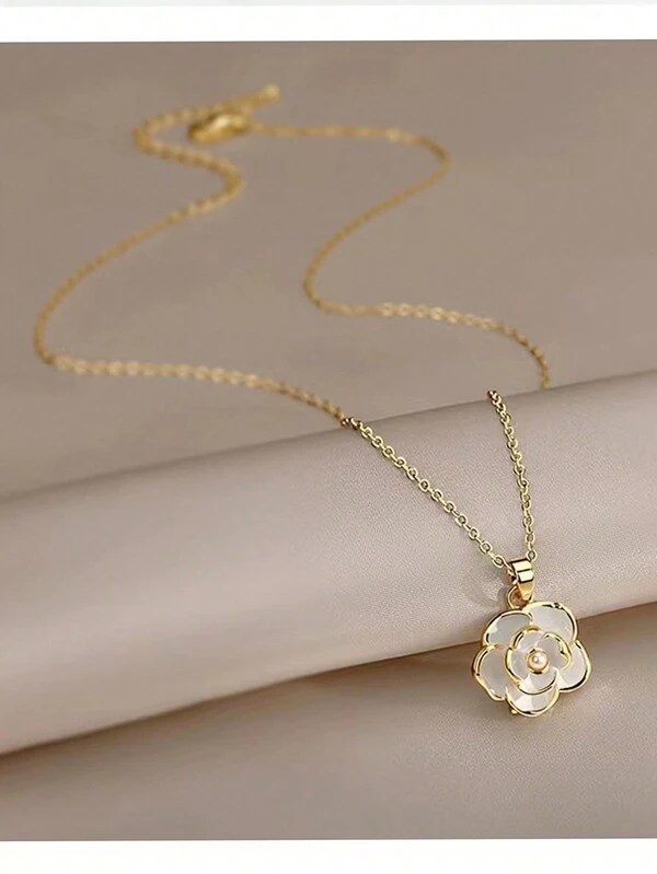1pc Simple & Fashionable Golden Camellia Necklace For Women Suitable For Daily Wear And Matching
