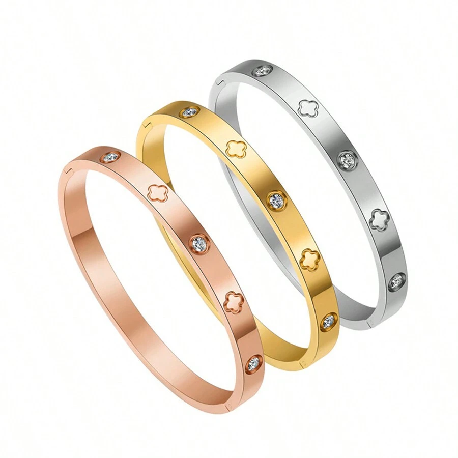 1pc Simple & High-End Lucky Clover Bangle, Non-Fading, Fashionable & Versatile Wrist Accessory, Perfect For Daily Wear For Women