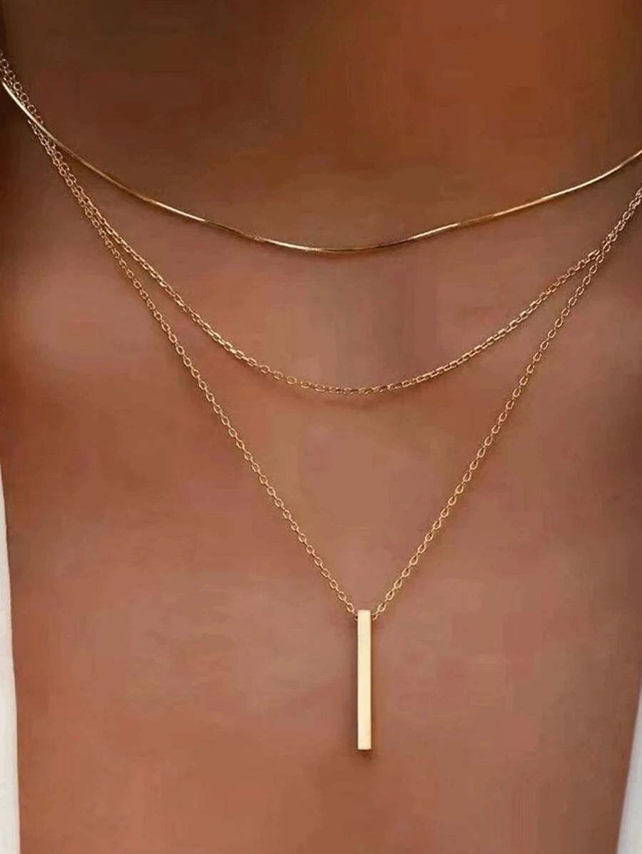 1pc Simple & Stylish Bohemian Style Women'S Multi-Layer Chain Necklace With Golden Lock Buckle, Personality Layered Pendant Clavicle Necklace For Christmas Gift