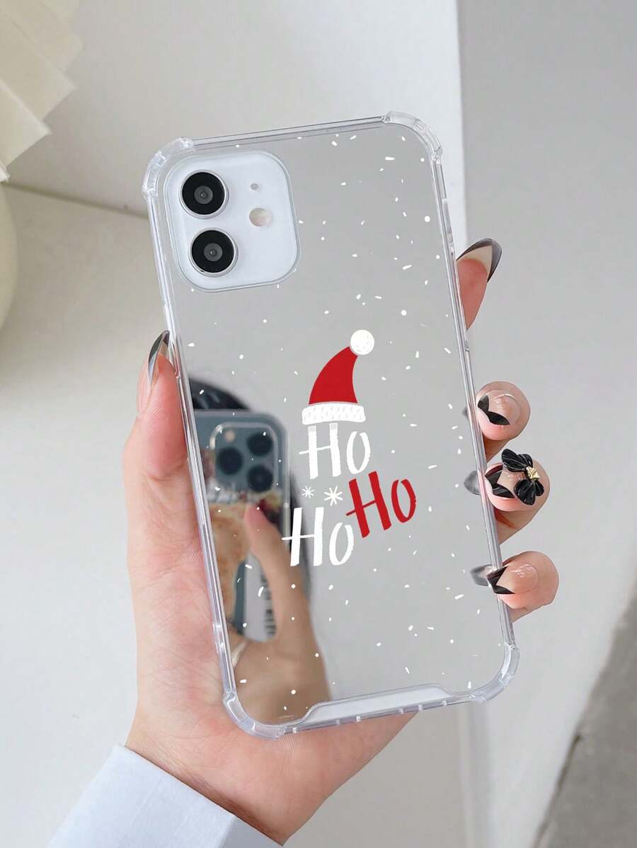 1pc Simple Christmas Snowflake Hat Ho Design Acrylic Mirror Coated Phone Case For Iphone