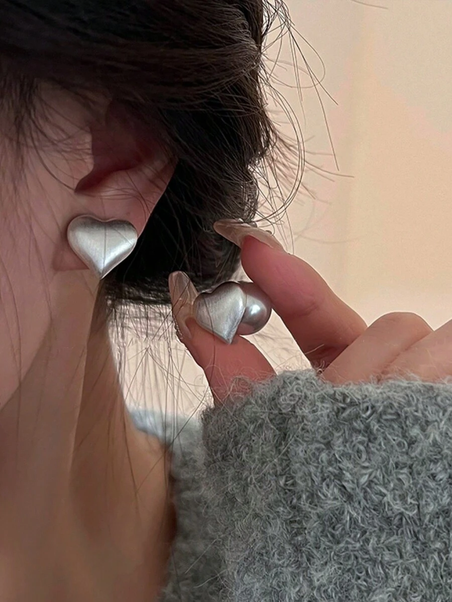1pc Simple Elegance Pearl Heart Dual Wear Stud Earrings, High-End Unique Design Minimalist Style And Versatile, Suitable For Women'S Daily Wear