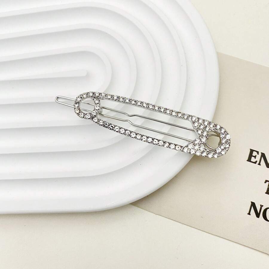 1pc Simple Full Rhinestone Barrette Hair Clip For Girls, Suitable For Hairpins, Bangs And Hair Accessories