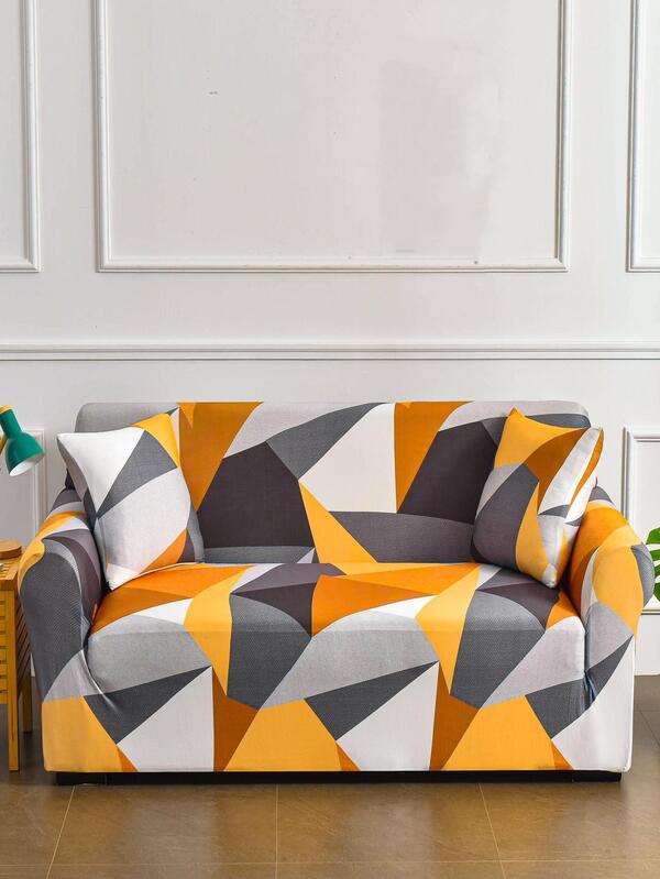 1pc Simple Geometric Pattern Dust Proof Sofa Cover, Modern Durable Polyester Sofa Slipcover For Household