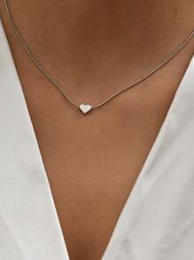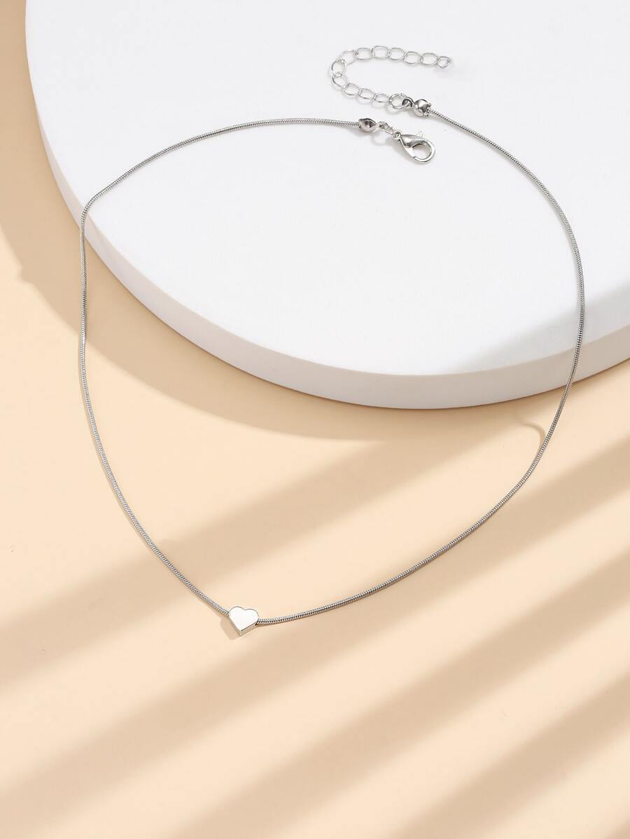 1pc Simple Heart Pendant Clavicle Chain Necklace For Women, Date/daily Wear Accessory, Copper Jewelry