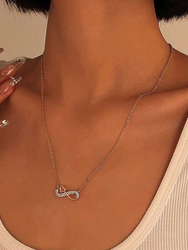 1pc Simple Infinity & Heart Symbol Decor Women'S Chain Necklace