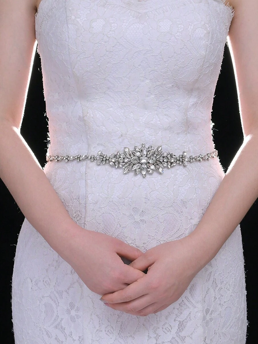 1pc Simple Rhinestone Bridal Belt Wedding Dress Sash Jewelry Accessory