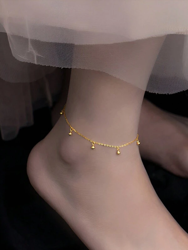 1pc Simple S925 Silver Multi-bead Design Shiny Anklet, Elegant And Fashionable For Women