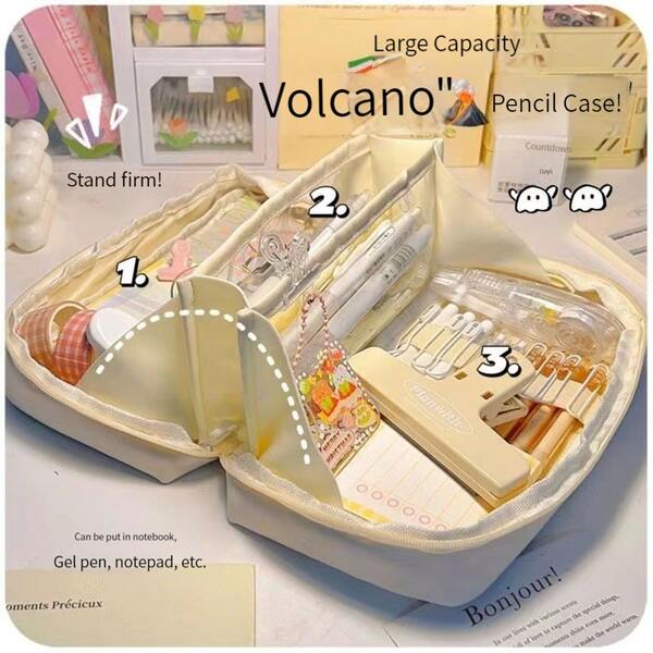 1pc Simple Style Ins Style Volcano Design Multilayer Pencil Case With Large Capacity, High Aesthetic, Multiple Functions And 3d Structure For Students' Stationery Storage, Including Pencils, Pens, Etc. And Zippered Closure